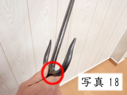 基本通りに写真17の持ち方で突くと、写真18の人差し指の根本が痛い。親指でしっかり元を押さえていても、かなり痛い。これが写真19のように持てば、そう言うことは無い。